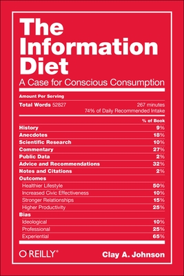 We’re all battling a storm of distractions, buffeted with notifications and tempted by tasty tidbits of information. And just as too much junk food can lead to obesity, too much junk information can lead to cluelessness. The Information Diet shows you how to thrive in this information glut–what to look for, what to avoid, and how to be selective. In the process, author Clay Johnson explains the role information has played throughout history, and why following his prescribed diet is essential for everyone who strives to be smart, productive, and sane.